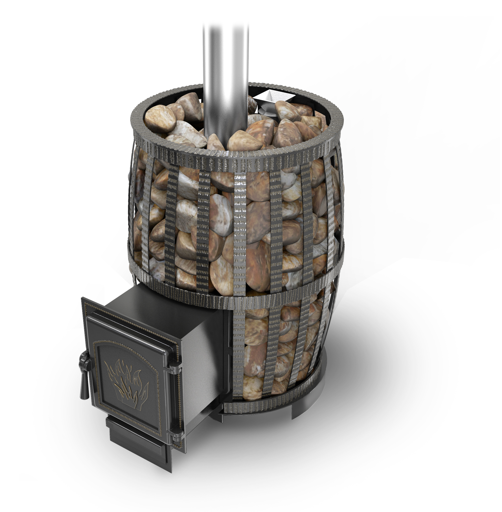 В печах Легенда Русский пар представлена новая конструкция закрытой каменки. Она охвачена круговым потоком пламени, камни в такой каменке прогреваются до температуры 600 °С, что позволяет создать в парилке наиболее благоприятный микроклимат, не пересушивая и не перегревая воздух. Вода подается в самую горячую центральную часть закрытой каменки через воронку (при этом дверь закрытой каменки должна быть приоткрыта для поступления мелкодисперсного пара в парное отделение). Закрытая каменка изготовлена из жаростойкой высоколегированной 4 мм нержавеющей стали. Вес камней в закрытой каменке 25 кг.
