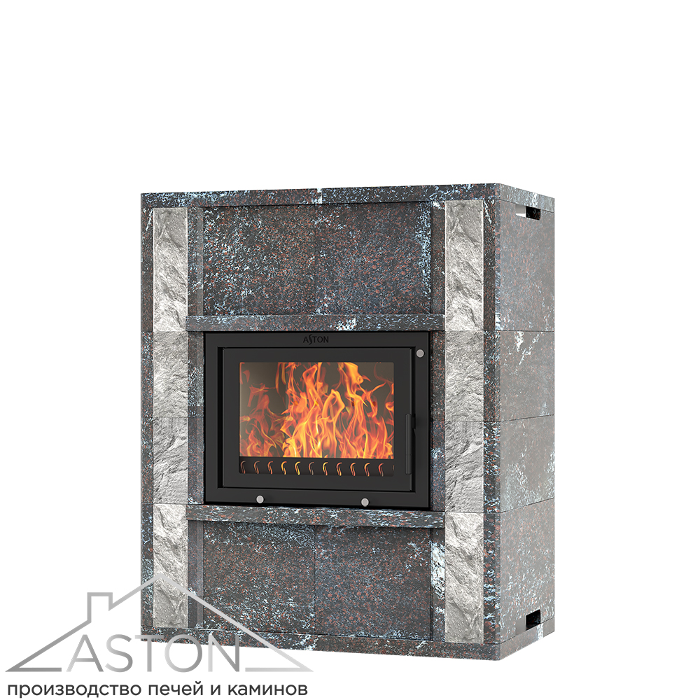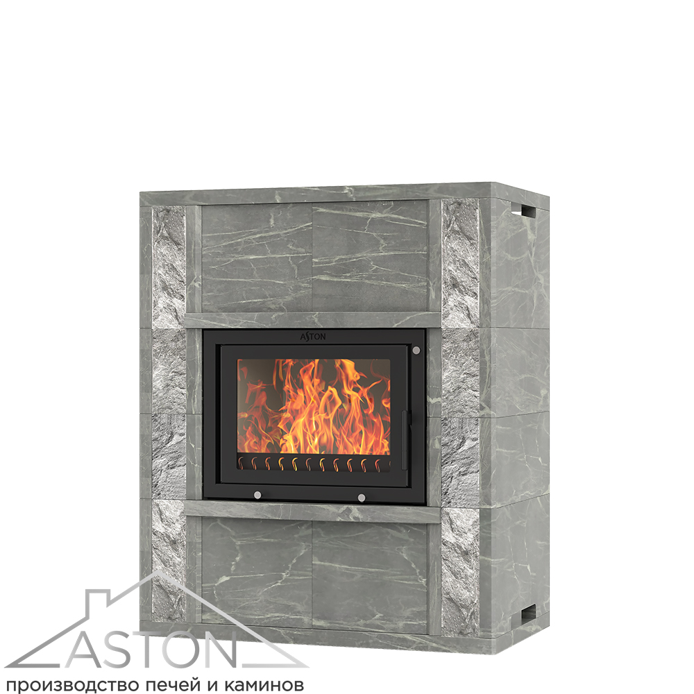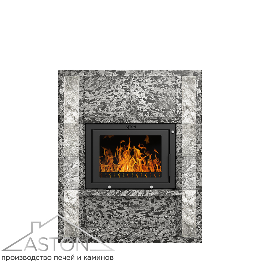 Облицовка сделана из натурального камня (на выбор: Пироксенит/Талькохлорит/Амфиболит), который быстро прогревается, хорошо держит тепло и обладает свойством медленно и равномерно отдавать энергию в окружающее пространство. Облицовка толщиной 40мм долго остаётся тёплой даже после окончания работы каминной топки.