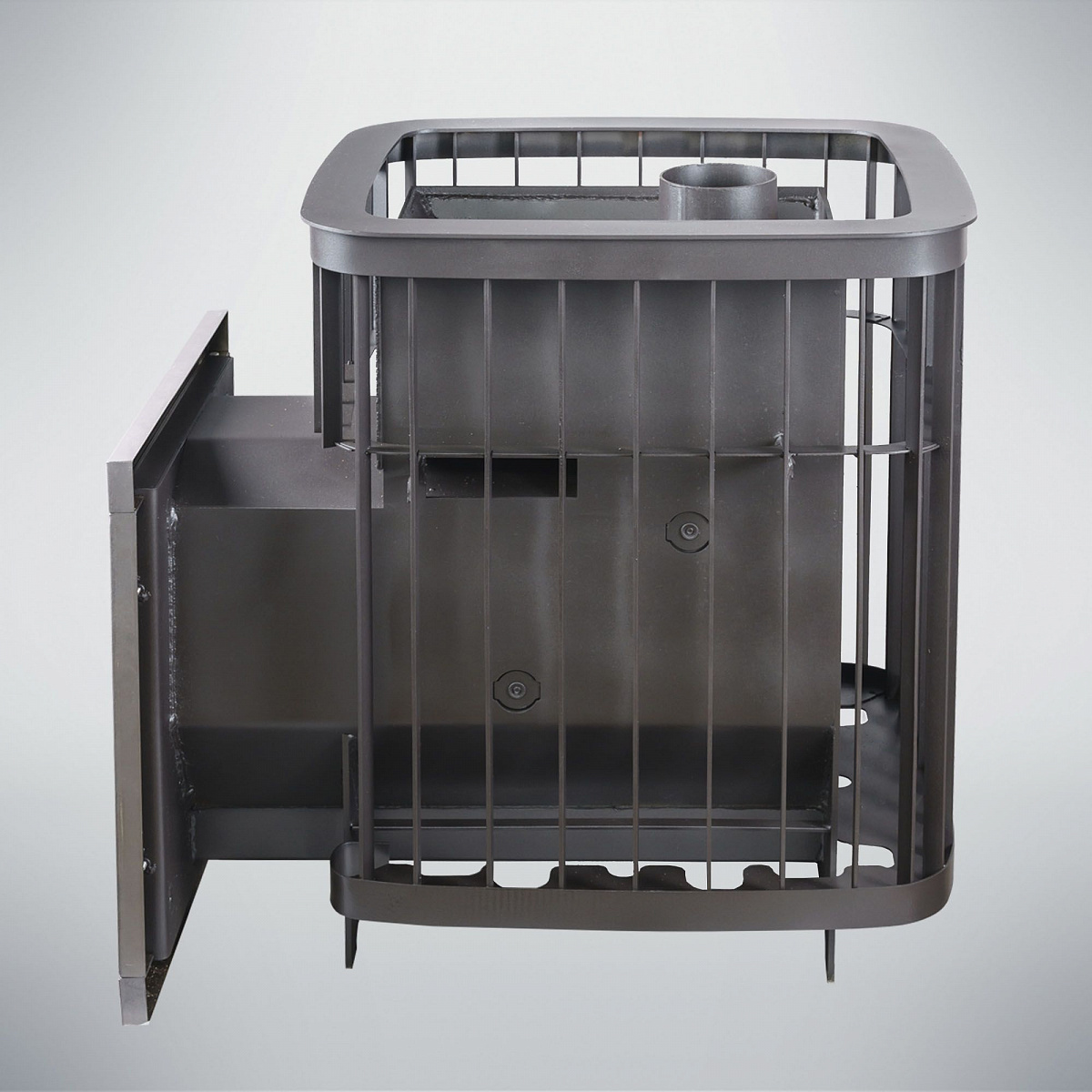 Печь для бани Варвара мини Каменка небольшая, но очень эффективная! Печь имеет компактные размеры, что дает ей возможность быть установленной в небольших помещениях. Печь имеет сетчатый кожух-конвектор. Закладка камнем в таком кожухе позволяет в разы уменьшить излучение, получаемое от металла печи, при этом камень прекрасно аккумулирует тепло и сохраняет его на протяжении длительного времени. В качестве дополнительных опций в печи можно предусмотреть встроенный в топку теплообменник, а также возможно заказать удлинение топливного канала до 280 мм.
