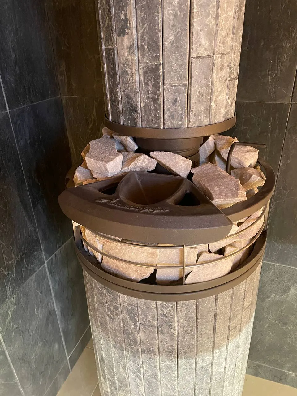 - Печь банная «Атмосфера » Талькохлорит ламель+сетка с тоннелем +Сетка-каменка ламель.Установлена в парной.Отделка Вагонка и полок - ольха и термоольха.